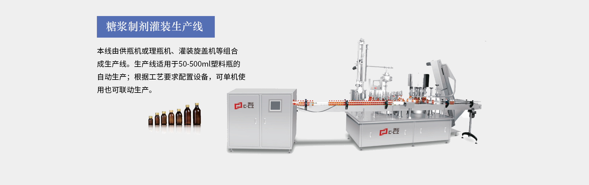 糖漿灌裝生產(chǎn)線適合30ML以上口服液的灌裝生產(chǎn),由供瓶機(jī)、直線式灌裝軋(旋)蓋機(jī)、立式貼標(biāo)機(jī)等設(shè)備組成,可全自動(dòng)完成灌裝、上蓋、旋(軋)蓋、貼標(biāo)等工序。主要用于制藥、食品、化工的的各種液體物料的灌裝聯(lián)動(dòng)生產(chǎn)。本生產(chǎn)線完全符合GMP要求。糖漿灌裝生產(chǎn)線特點(diǎn)裝量特征:無(wú)滴漏、不起泡、不飛濺。運(yùn)行特征:運(yùn)行穩(wěn)定,噪音??;灌裝精確,能耗少,破瓶率低,成品合格率高性能特征:整條生產(chǎn)線可單機(jī)控制和聯(lián)鎖控制。洗瓶...